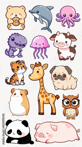 Kawaii animal illustration design element set
