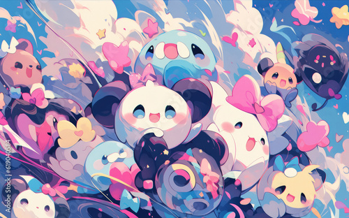 Kawaii doodle monsters, city, cat, robot for child coloring books, Generative AI