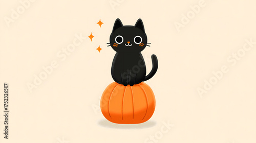 Kawaii Halloween Black Cat and Pumpkin Illustration – Cute Jack O’ Lantern Art on Pastel Background