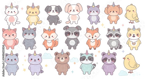 Kawaii Various Animals Cute Illustration - A collection of kawaii-style cartoon animals