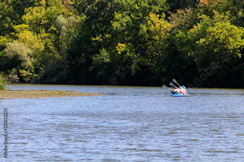Kayaking on the beautiful river at summer