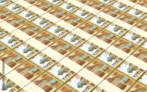 Kazakhstan tenge bills stacks background. 3D illustration.