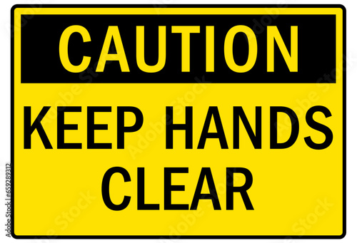 Keep hand clear warning sign and labels