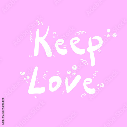 Keep love handwritten lettering on pink background.