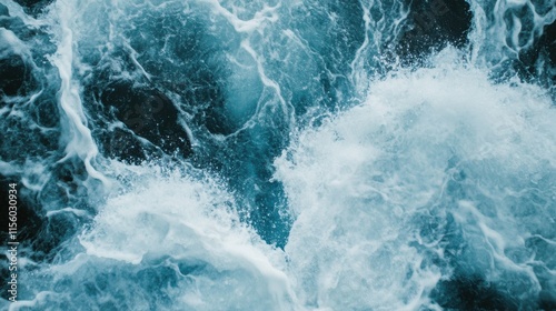 Keila waterfall texture, Estonia. Close-up, long exposure. Blue and white water splashes. Abstract natural pattern. Environmental conservation, travel destinations, graphic resource. Panoramic image