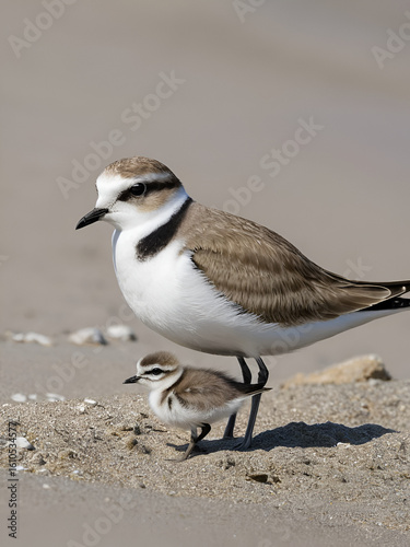 kentish plover, mother and baby bird
