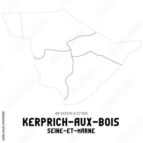 KERPRICH-AUX-BOIS Seine-et-Marne. Minimalistic street map with black and white lines.