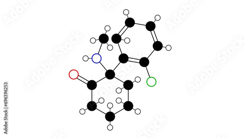 ketamine molecule, structural chemical formula, ball-and-stick model, isolated image dissociative anesthetic