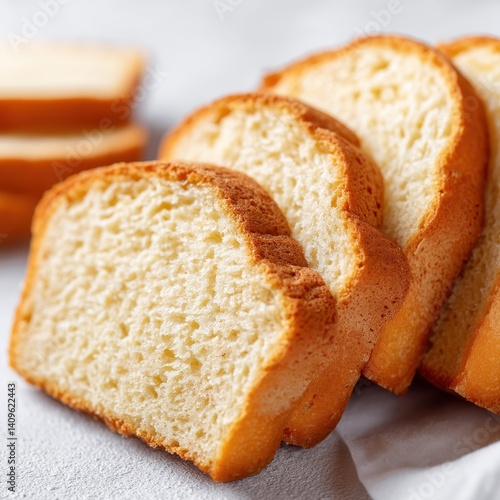 Keto lifestyle low carb recipes concept. Freshly Sliced Loaf of Soft White Bread on a Light Surface with Golden Brown Crust