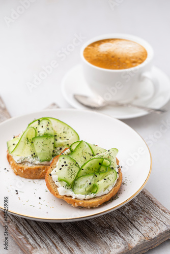 Keto Toasts with ricotta, egg, cucumber and black sesame.