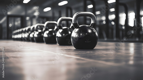 Kettlebell set close-up on gym floor