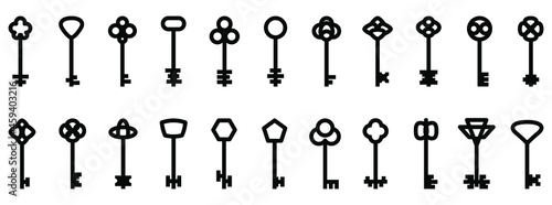 Key icon. Set of black icons of keys in flat design. Vector illustration. Key symbol isolated