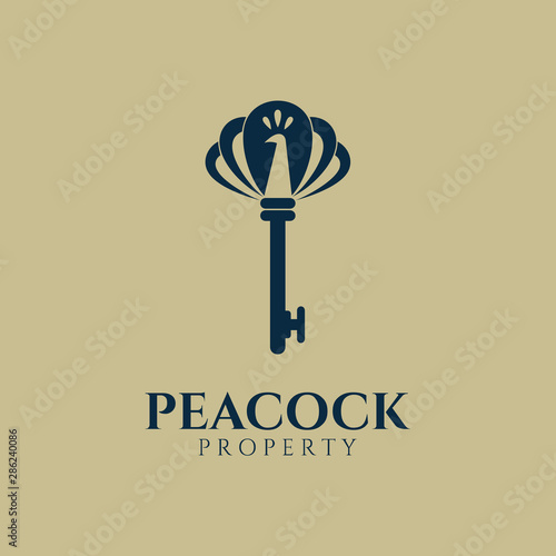 Key logo peacock shape for real estate business.Flat style.Property business symbol.Modern design.Security icon