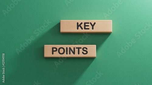 Key points symbol. Wooden blocks with words Key points.Business and Key points concept. Copy space.3D rendering on green background.