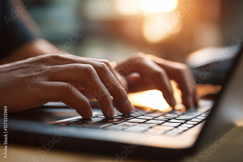Keyboard Hands typing on laptop while working on documents
