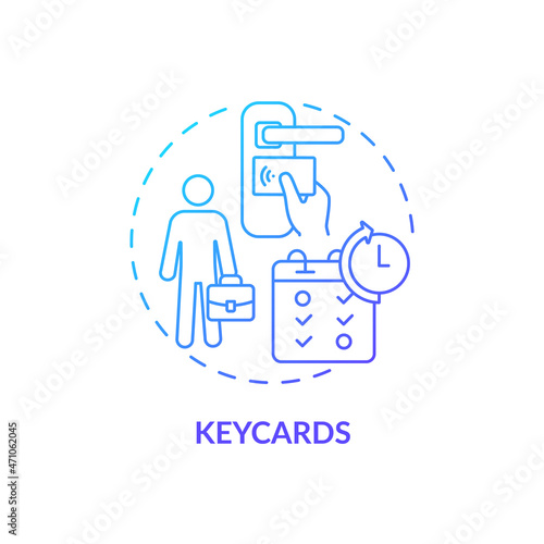 Keycards blue gradient concept icon. Sensor reader on office door. Workplace security. Employee monitoring abstract idea thin line illustration. Vector isolated outline color drawing