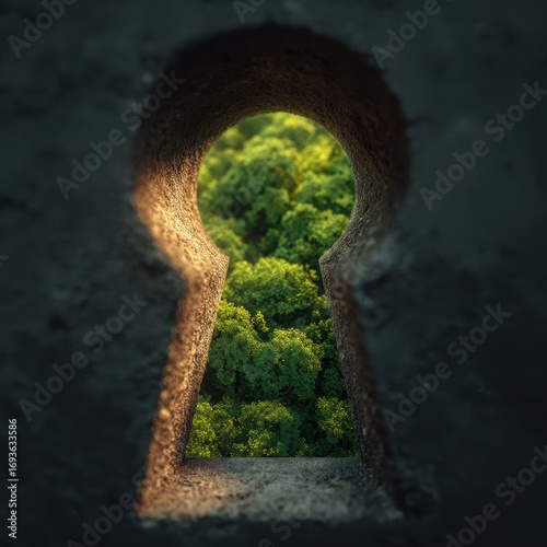 Keyhole View of Lush Green Forest, Nature Perspective.
