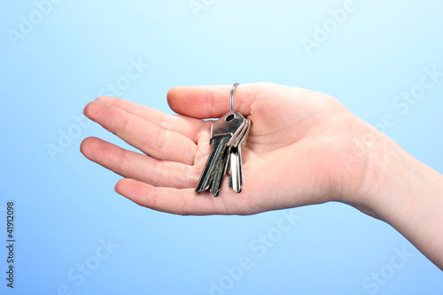 Keys in hand on blue background