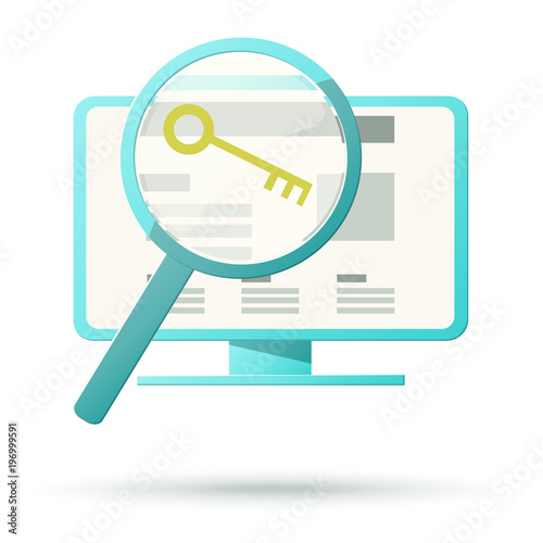 Keywords icon computer and magnification glass. Can be used for code, password, research.