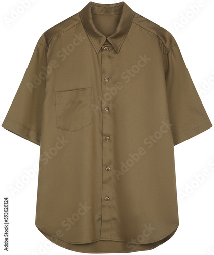 khaki short sleeve button down shirt isolated on transparent or white background, png