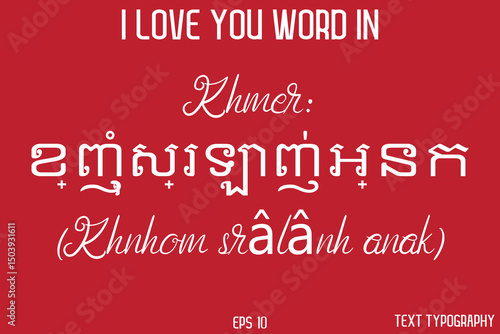 Khmer: ខ្ញុំស្រឡាញ់អ្នក (Khnhom srâlânh anak) - I Love You Word Typography Cursive Text