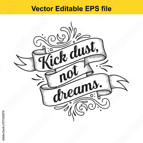 Kick dust not dreams quote in a banner with decorative elements