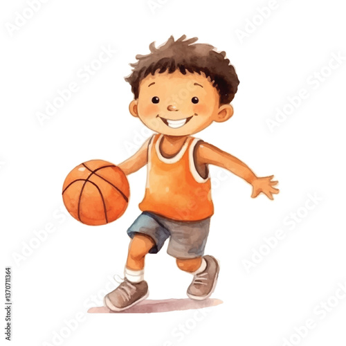 kid playing basketball cute watercolors illustration on white background