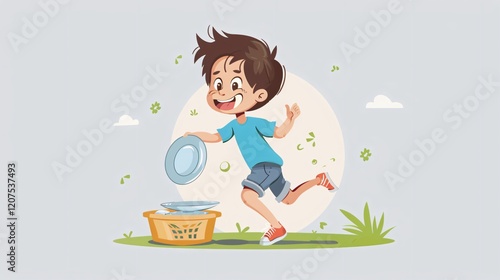 Kid Running with Clean Dishes Box: Helping Parents with Chores