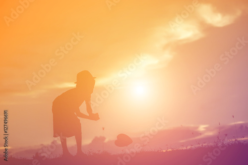 kid silhouette,Moments of the child's joy. On the Nature sunset