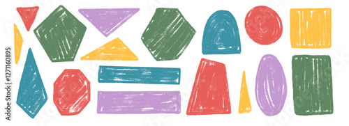 Kids geometric shapes set. Text boxes textured frames. Rounded and square childish figures. Vector hand drawn quotation stickers shapes. grunge geometry callout design.