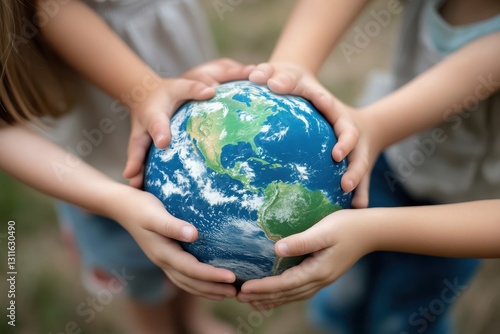 Kids hugging the Earth globe, symbolizing unity and environmental awareness on Earth Day