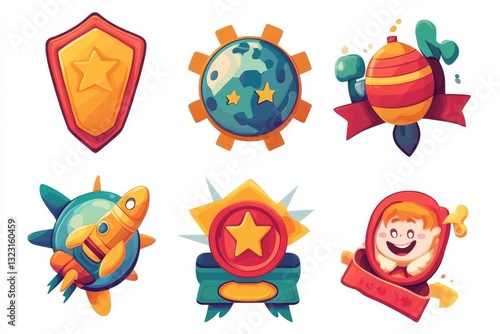 Kids zone emblem colorful cartoon illustrations set