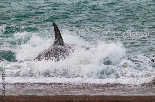 Killer whale hunting sea lions,Peninsula Valdes, Patagonia Argentina