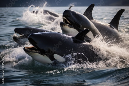 Killer whales working together to capture a seal.