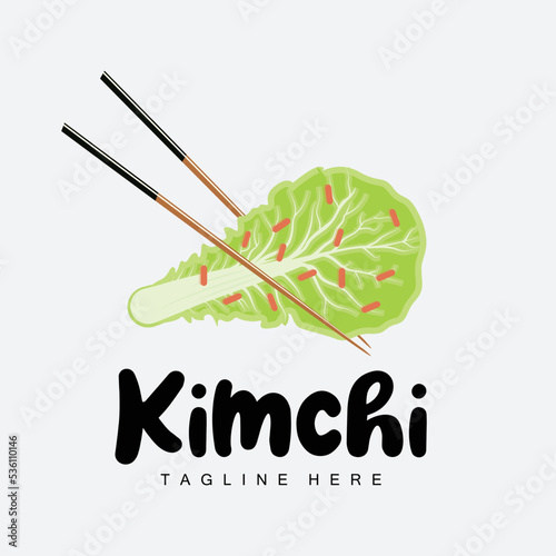 Kimchi Logo Design, Korean Traditional Food Vector, Cabbage Green Vegetable Logo Illustration, Company Brand Icon