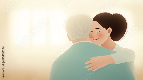 Kind nurse gently hugs elderly patient in heartwarming moment