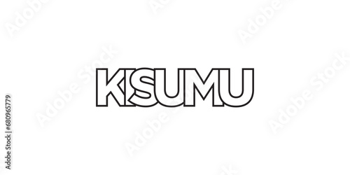 Kisumu in the Kenya emblem. The design features a geometric style, vector illustration with bold typography in a modern font. The graphic slogan lettering.