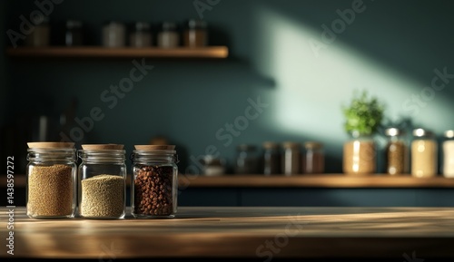 Kitchen counter with spice jars
