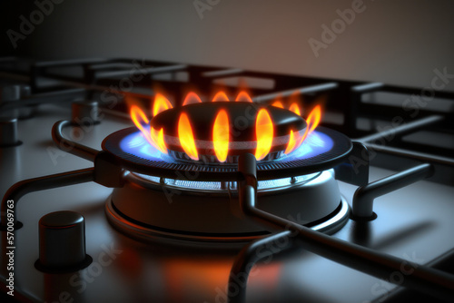 Kitchen gas cooker with burning fire propane gas (AI Generated)