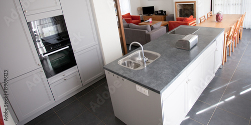 Kitchen Interior with Island Sink Cabinet in New Luxury Home