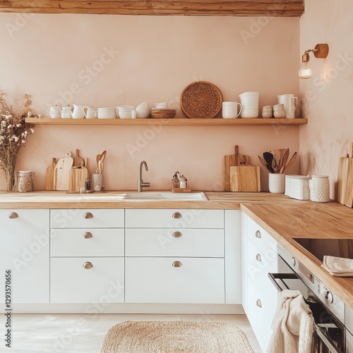 Kitchen of White Cabinets and Wooden Counters is Presented Here