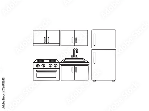 kitchen set line icon, outline vector sign, linear pictogram isolated on white. logo illustration