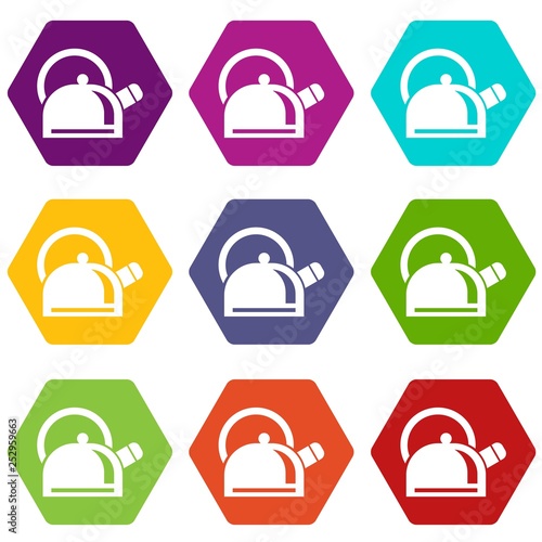 Kitchen teapot icons 9 set coloful isolated on white for web
