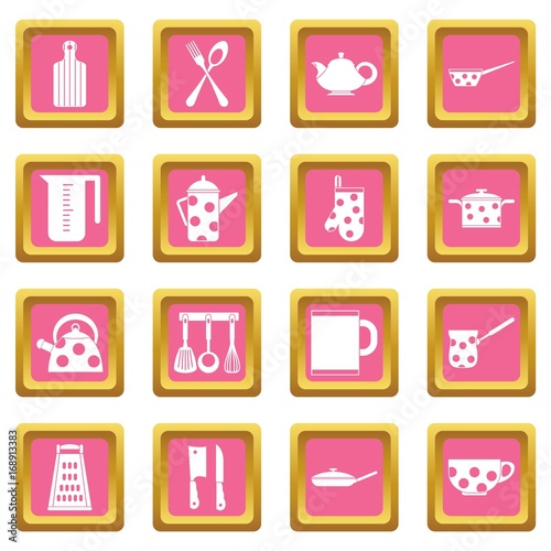 Kitchen tools and utensils icons pink
