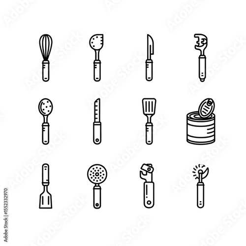 Kitchen Utensil and Tool Icons A Comprehensive Collection of Line Art Graphics
