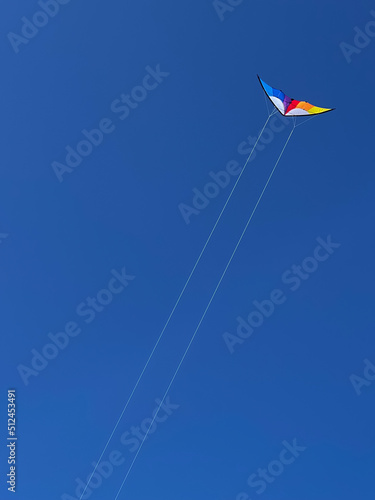 Kite Flying Against A Clear blue Sky On A Summer cloudless day. Graphical concept with copy space.