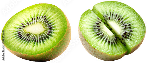 Kiwi Zest: A macro masterpiece of a kiwi slice, showcasing its vibrant green flesh, intricate seed patterns, and refreshing juiciness, isolated on transparent background.
