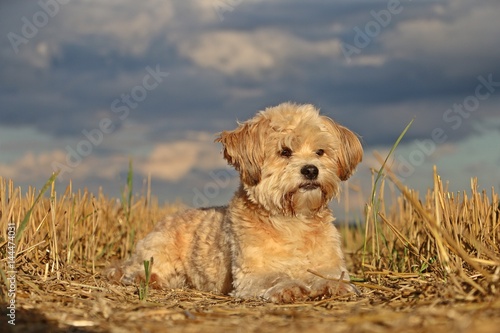 kleiner hund im stoppelfeld