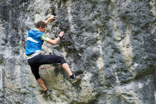 Klettern am Felsen Kalkstein im Allgäu, Pfronten 2