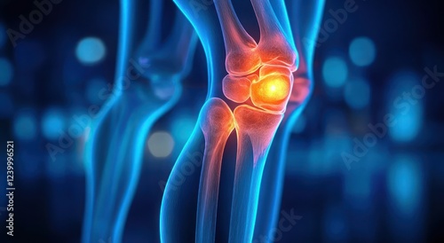Knee Joint Anatomy and Pain Illustration with Detailed Bones Ligaments Meniscus Cartilage Inflammation and Arthritis